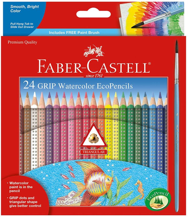 3.3mm pencils contain more pigment for richer color laydown. Smooth, vivid colors blend easily and dissolve instantly with water. Made from re-forested wood, the easy to hold triangular shaped pencil contains a soft-grip zone for a secure hold. Break resistant leads are easy to sharpen.