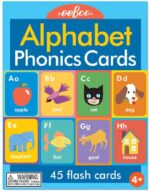 The 45 cards compiled by Reading Specialist Dr. Sarah Brown show upper and lower case letters, and a labeled object that starts with the letter shown. This set of large flash cards is an excellent way to reinforce learning the letters and their sound/symbol relationship. Illustrations by Monika Forsberg.
