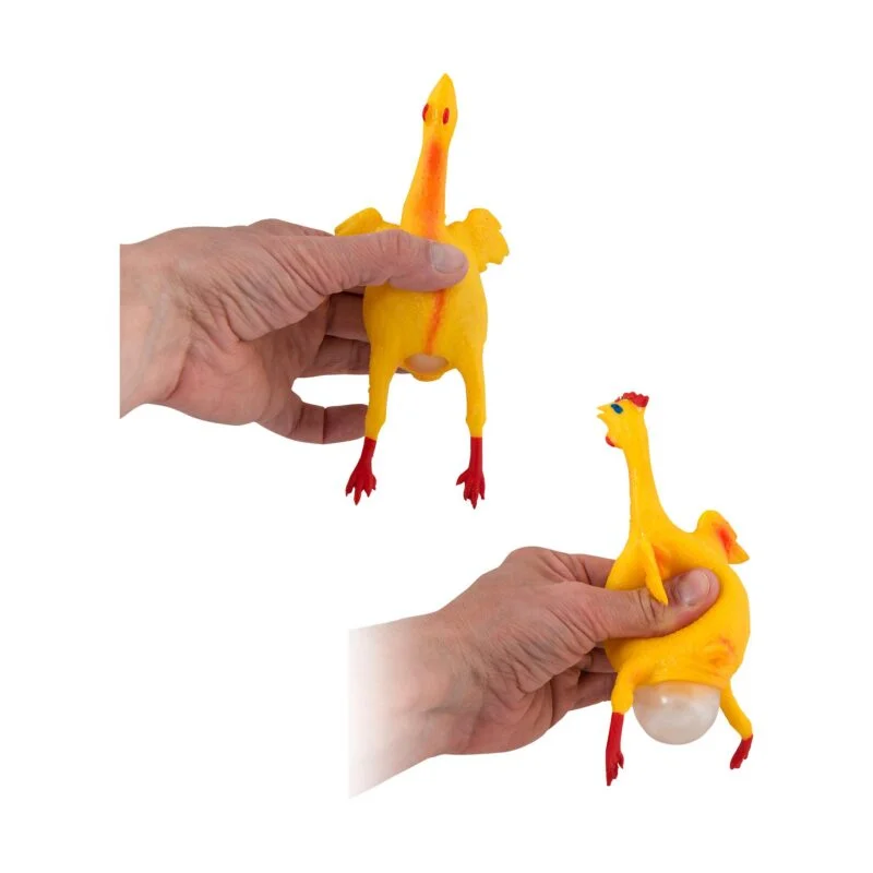 Squeeze the chicken to see the egg! Squishy and stretchy, this eggsellent chicken is a great fidget toy!