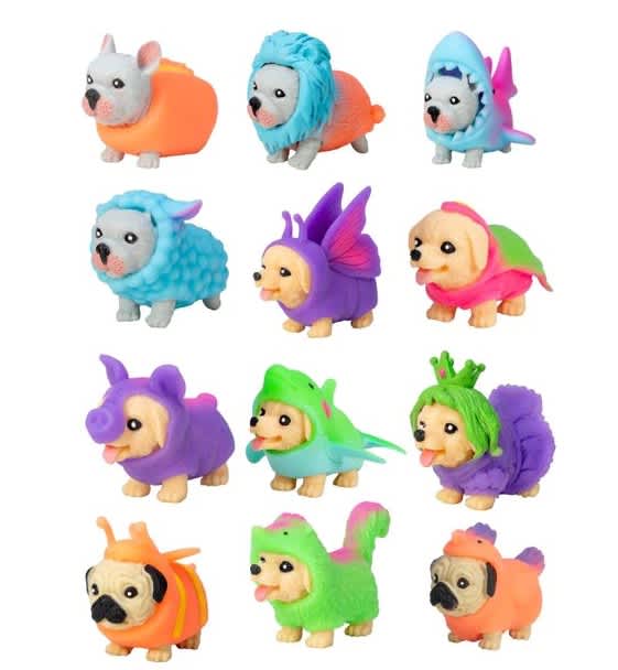 Squish, squeeze, and squeal over your Schylling Rave Party Puppies! Each raver puppy comes dressed in a neon animal costume. The costumes on Party Puppies are interchangeable for added fun. Collect them all!